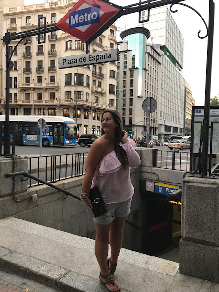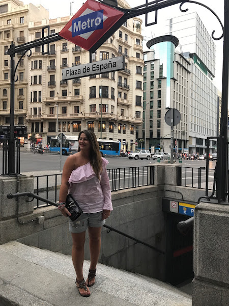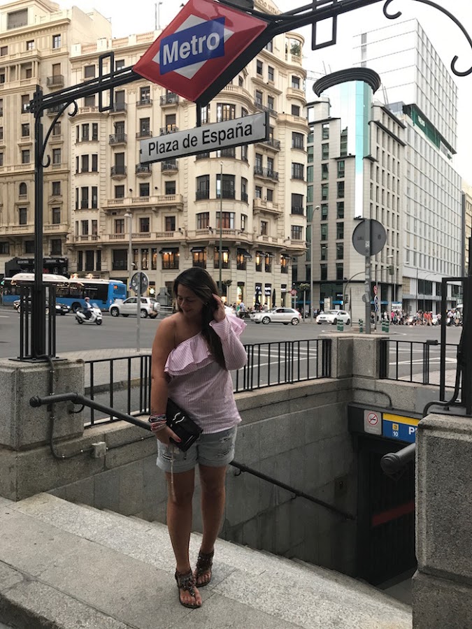 Hoy os traigo uno de los looks que lleve en mi viaje a Madrid hace un par de semanas. Quería un look cómodo porque iba de shopping y a recorrer las calles de mi ciudad favorita, así que opte por shorts denim combinados con una blusa asimétrica en color rosa y rayas blancas. Sandalias joya y bolso en color granate complementaban el look.