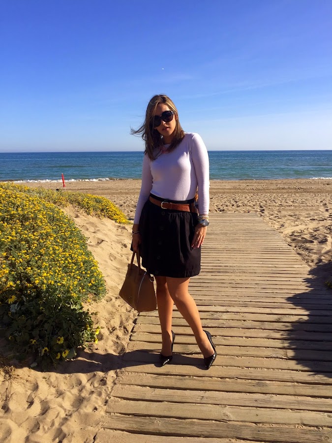 Good night sweeties! We start a new week with a sweet outfit. This look is perfect to go to work or for a dinner with our boyfriend. In the outfit of the day I wear a black skirt with a pink sweater. The accessories of the outfit were my new black stilettos of Zara that I"m in love with them, my bag of Guess and a pink necklace.