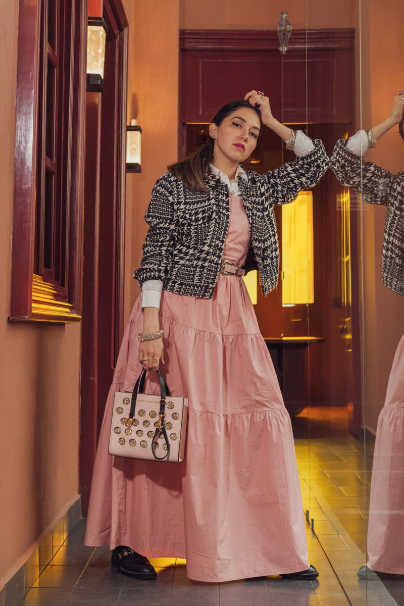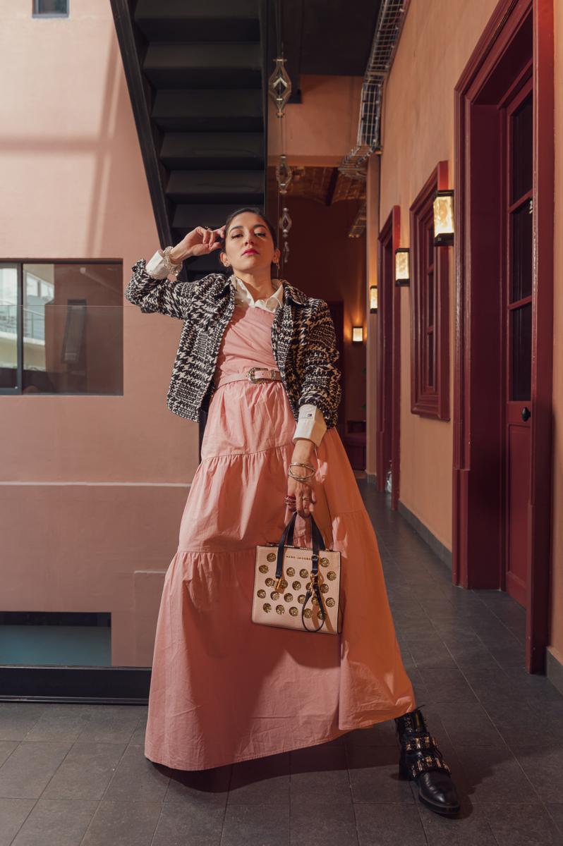 El baby pink no tiene que ser super sweet si lo combinas con los accesorios correctos. Me encanta usar este vestido de mil formas, pero con accesorios bold y combat boots me pareció que puedes dar un twist muy poderoso.Baby pink doesn’t have to be super sweet if you pair it with the right accessories. I love wearing this dress in a thousand ways, but I love the powerful twist given by bold accessories and combat boots.