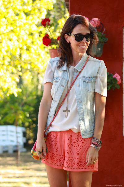 Short: Sheinside (Here); Chaleco/Vest: Mango (ss14); Bolso/Bag: Faure Complementos; Sandalias/Sandals: Fris&Company; Reloj: Marea (here)