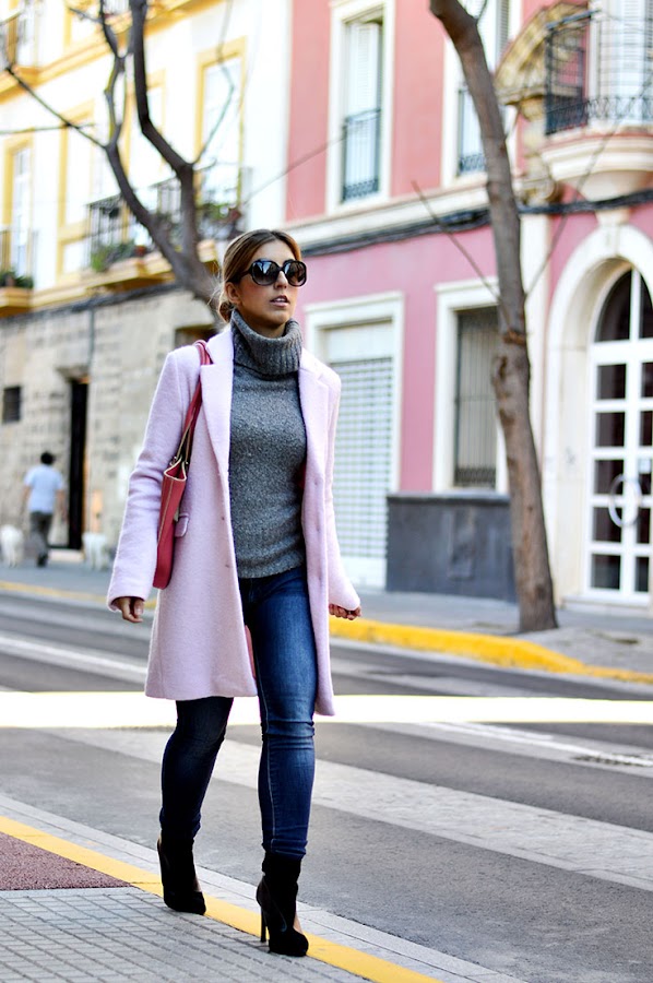 Pink coat: Breshka / Jeans: Sfera / Sweater: Fórmula Joven / Booties: Zara