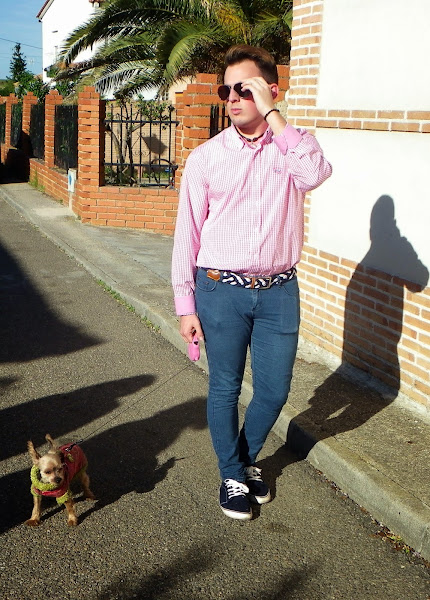 En este post os dejo algunas fotos de la tarde del domingo y de mi look. Sencillo y cómodo, ya que la tarde fue calurosa. Una camisa rosa estampado vichy, conjuntada con unos pantalones azul marino, al igual que las zapatillas.