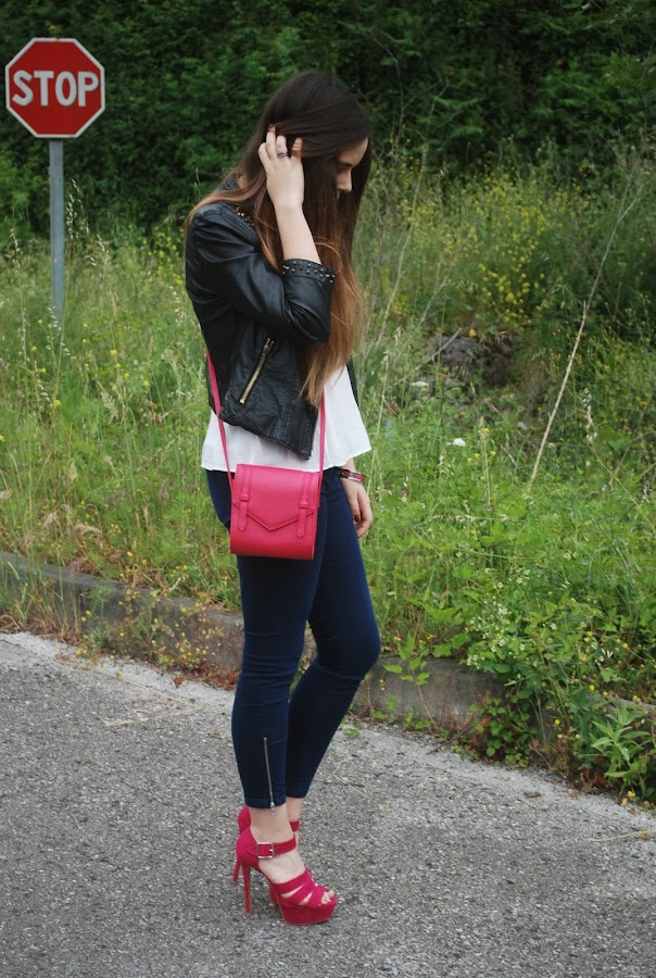 Como esta semana está siendo bastante gris decidí ponerla con jeans (pero ya estoy pensando outfits mas veraniegos), mi nueva blusa blanca, perfecto negra y con bolso y pulsera a juego. No soy muy fan de combinar zapatos con bolso, pero estaba deseando estrenar este bolsín y esta era la ocasión perfecta.