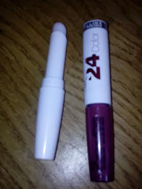 El otro que tengo y me compré ya hace algún un tiempo. Es el Superstay 24H (Maybelline). Pone que dura 24 horas de duración. Tiene dos partes, el pincel aplicador para el color labial, y la otra que es el cacao en barra para sellar, dar brillo e hidratara.