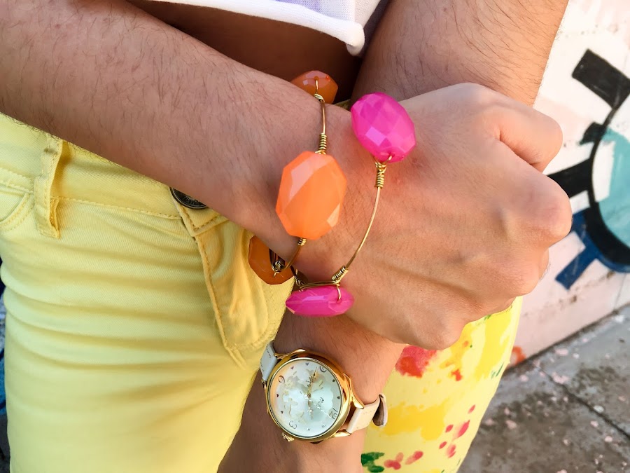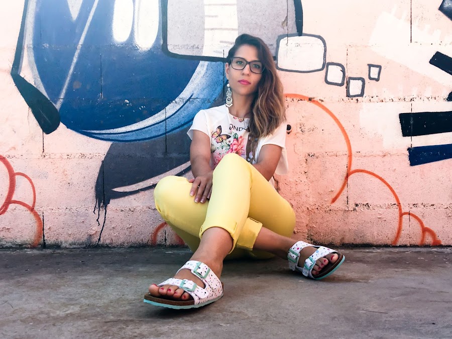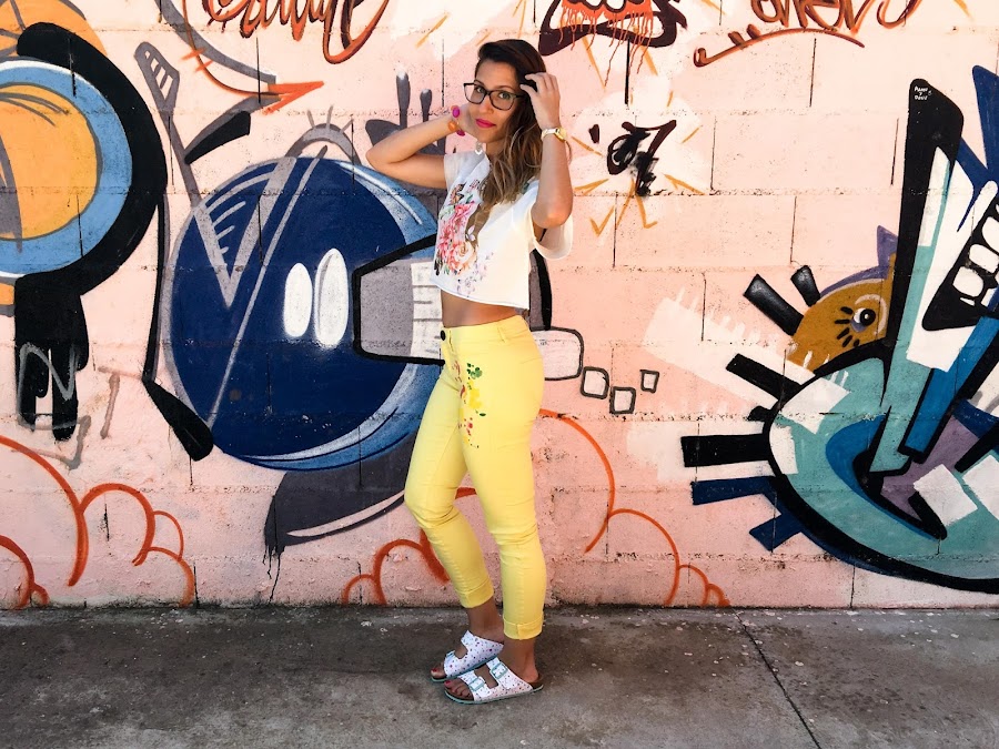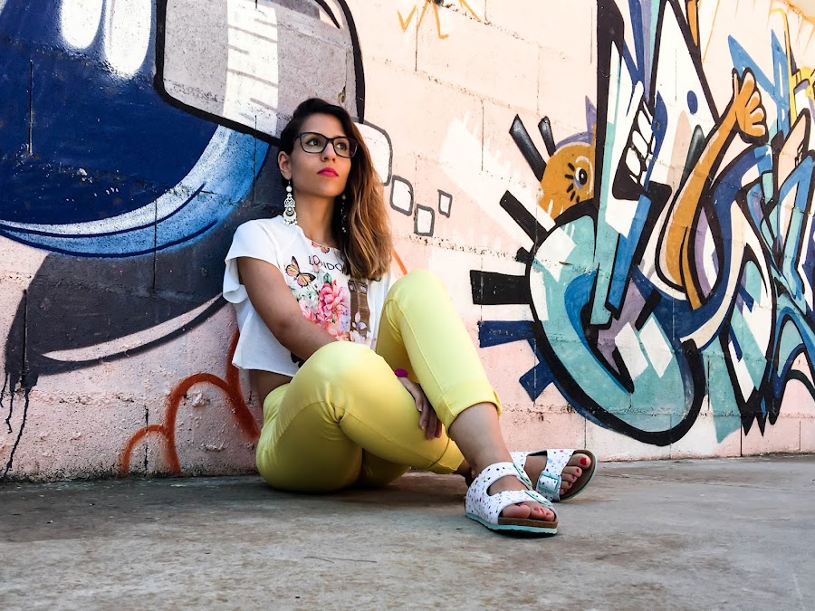Para los que os enamorasteis de mis tres look de DESIGUAL, habréis pensado que se me olvidaba subir el tercero, pero no, no se me ha olvidado!! Perdonad que lo suba un pelín más tarde!! Este tercer look me tiene enamorada, es fresco, alegre y colorido! Bueno, como todos los looks de DESIGUAL! Jajaja. El prota del look son unos jeans amarillos con un estampado de pintura de colores en un lateral. Son súper cómodos! Y para mis pies, he elegido unas sandalias blancas con estampado de lunares de colores que le iba genial!