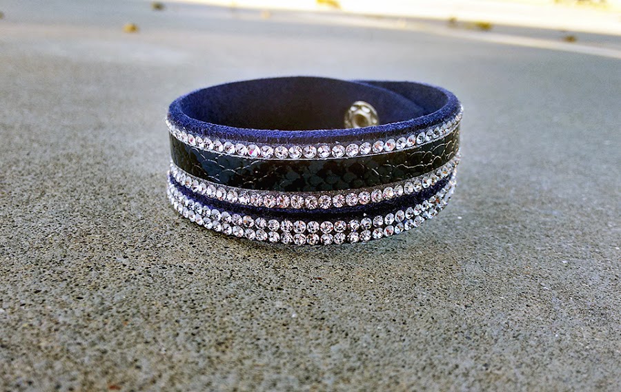 Y como complemento perfecto, llevo una pulsera combinando brillantes con una tira simulando la piel de serpiente de color azul marino, detallito de Pixie.