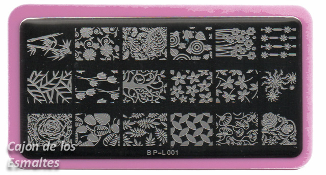 Continuamos la semana con las colaboraciones de placas de estampar de la tienda de nail art Bornpretty Store. Si los diseños con damasco o arabescos no son lo suyo hoy les traigo la placa rectangular L001 poblada de diseños de flores y hojas, la pueden ver aquí Flowers & Leaves Nail Art Stamp Template Image Plate BORN PRETTY L001 12.5 x 6.5cm. Su precio normal es de USD5.99 al cual le pueden descontar un 10% con el código PRBQ10, o si son pacientes la tienda suele hacer rebajas frecuentes de hasta el 40%.