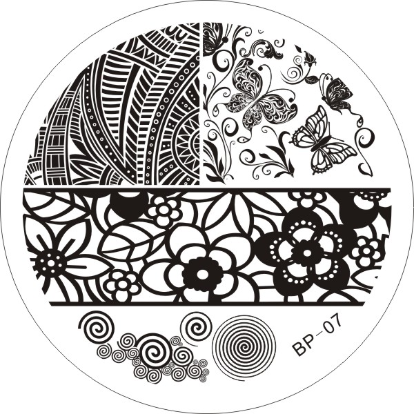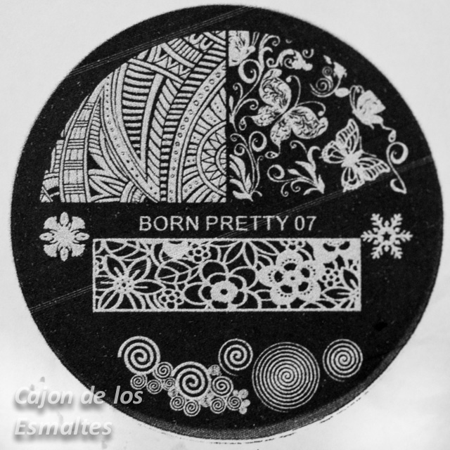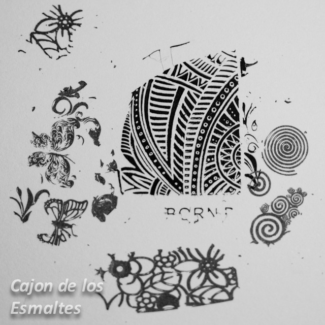 Y por último vamos por la placa BP 07, eliminaron los copos de nieve y transformaron en usable el diseño central. Aquí luché bastante con el diseño de la mariposa, las líneas son muy finas y el grabado poco profundo. Igual para mi gusto se paga sola la placa con el diseño geométrico de arriba.