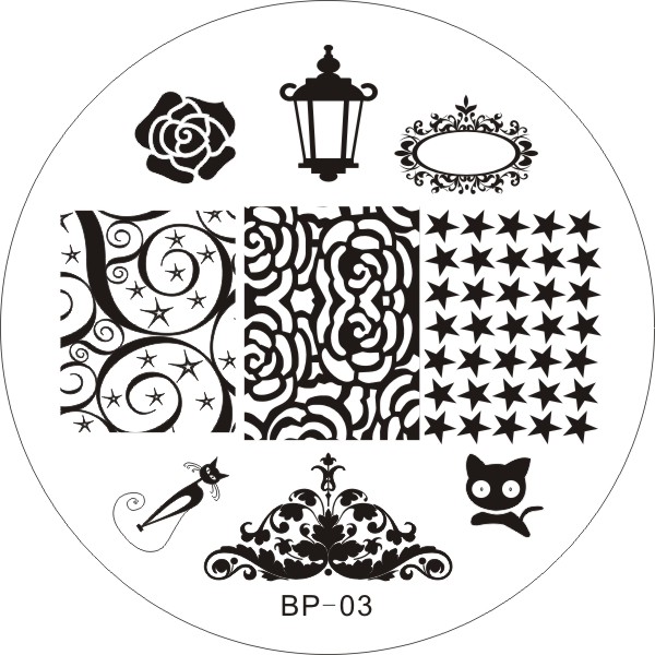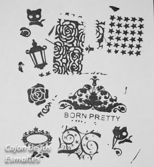 En la placa BP 03 por ejemplo agrandaron el ancho de los tres diseños de uña entera, el central de rosas sin duda es demasiado angosto en la versión que tengo. Aquí el único diseño que costó transferir es la línea delgada de la cola del gato pequeño, con el resto 0 problemas.