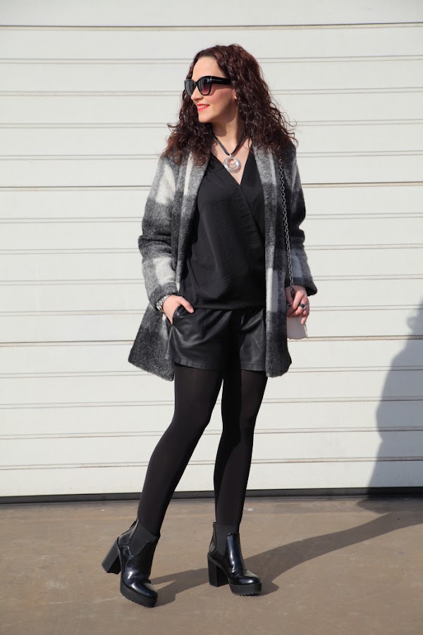 Abrigo/Coat: Mango. Blusa/Blouse: Stradivarius. Shorts: Zara.