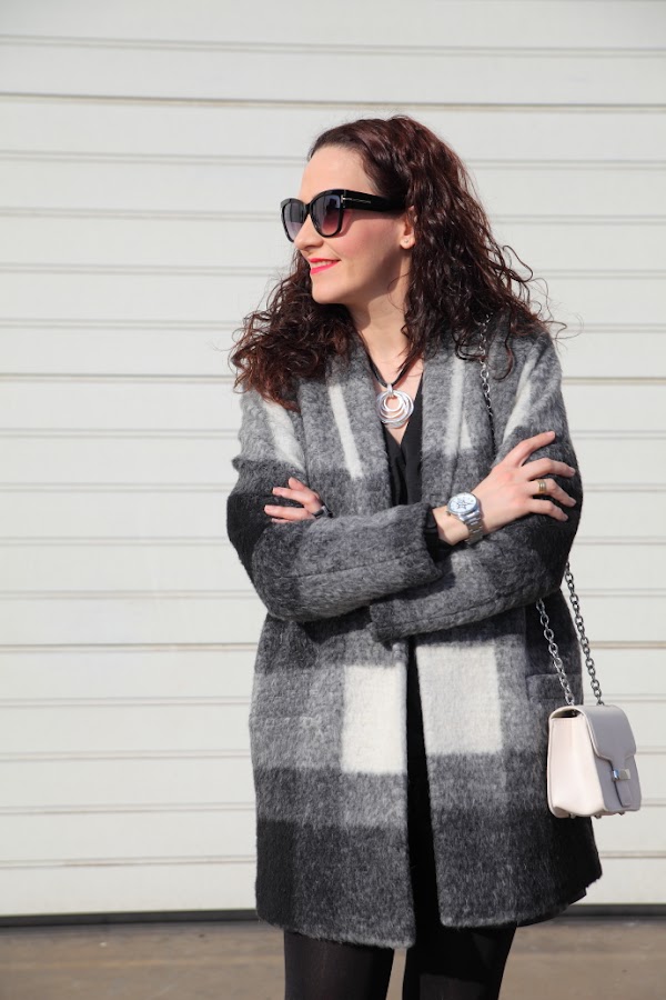 Este invierno me apetecía comprarme un abrigo gris, raro en mi porque es un color que no suelo utilizar tan apenas. Pues si, como os decía, me entró el run run en la cabeza y fui en su busca. Primero encontré uno en Mango que me enamoró pero no lo tenían en mi talla, busqué y rebusqué pero fue imposible dar con él. Durante una de esas búsquedas en Mango online descubrí el abrigo de cuadros en tonos grises y blanco que llevo hoy. No es exactamente como lo quería porque no había pensado en que fuera de cuadros, pero es que fue verlo y enamorarme de él.