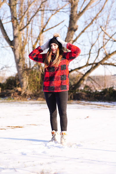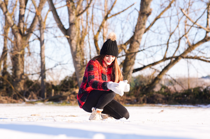Y no solo me encanta divertirme en la nieve, sino que también me gusta la ropa para el frío. Por suerte, hoy en día tenemos muchísimas opciones de vestuario con las que mantener en el estilo a varios grados bajo cero. Una de esas prendas es esta sudadera polar con estampado de cuadros vichy en rojo y negro.