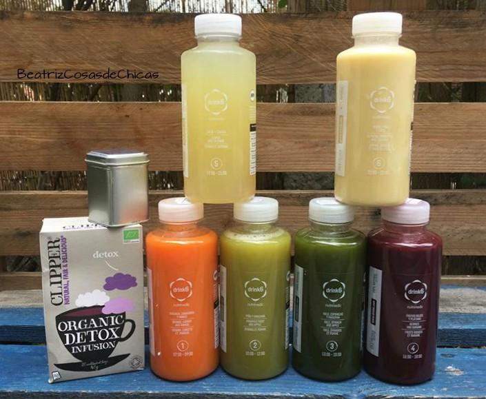 lo prometido es deuda y tal y como os comente hace ya tiempo por mis redes sociales….aquí tenéis toda la informacion acerca de los planes DETOX que están tan de moda….Tuve la suerte de poder probar hace un par de semanas los 6 Zumos del Plan Detox de un día de la marca DRINK6 y la verdad es que me gusto la experiencia…así que vamos a ver el post de hoy, que os lo voy a contar todo, todo y todo… Lo primero es saber exactamente que es un PLAN DETOX…porque hay gente que se piensa que esto es para adelgazar y no, no es así…un Plan Detox lo que hará a nuestro cuerpo es limpiarlo de TOXINAS a través de una alimentación sana y equilibrada. Con esta limpieza lo que hacemos es ayudar a trabajar mejor a los órganos mas implicados en nuestro cuerpo…Que nuestro cuerpo elimina de manera natural las toxinas que ingerimos….si, cierto es…pero las eliminan de una manera mucho mas lenta y en muchos casos el cuerpo no da mas de si y algunas toxinas se van almacenando. La acumulación de toxinas tiene muchos efectos negativos para el organismo: desde dolores de cabeza, cansancio, falta de energía, bajada de defensas….. y podemos ayudar a nuestro organismo a que pueda eliminar todas las toxinas, de varias maneras: