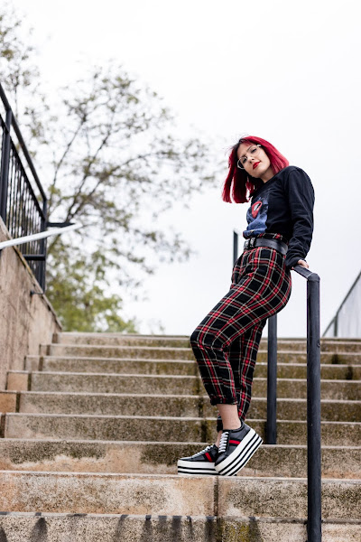 And it was time to bring you a new look, which last week Ive been here. The highlight of the look is my new FEMME LUXE shirt. I love the vintage style print that has some planets and red lips. Its a long maxi, in case you want to use it as a dress, but I prefer to use it as a shirt.