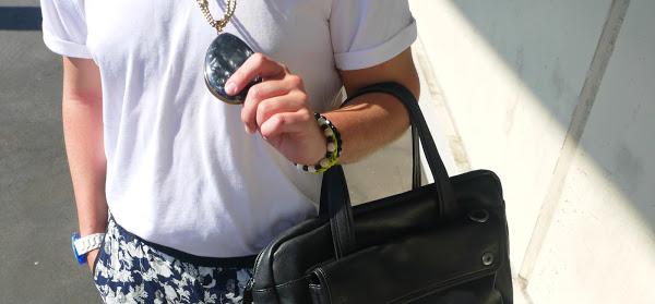 Si duda cabe destacar como prenda estrella el pantalón vaporoso estampado de flores, que decidí combinarlo con las sandalias marrones que me compré hace poco. He de reconocer que fue mi madre quien las vio, y fue amor a primera vista. Como ya comenté en mi anterior post (especial Sandalias AQUÍ) me encanta el color marrón para unas sandalias de piel. El look quise completarlo con una camiseta blanca básica y un colgante que me encanta por sus tonalidades.