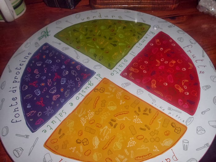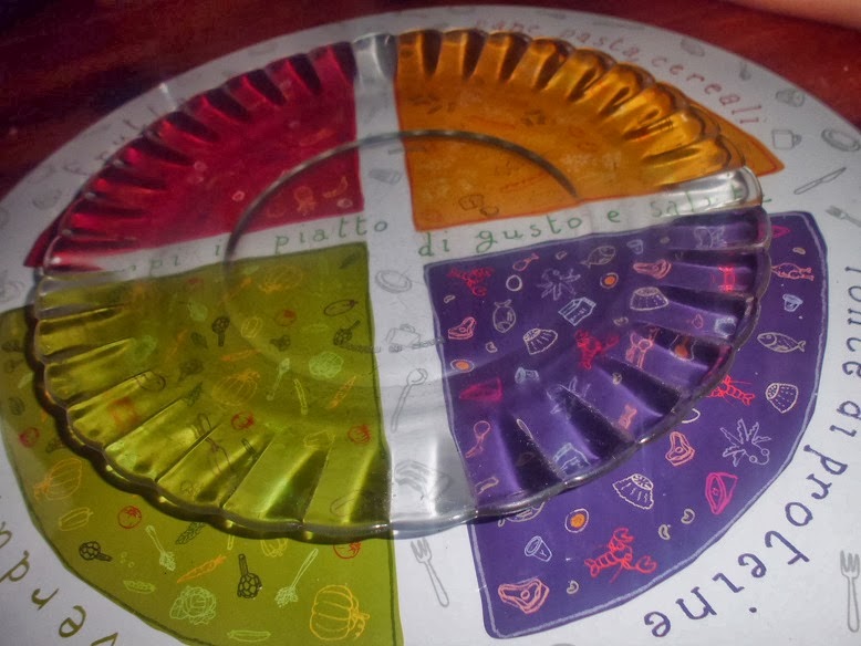 Es curioso el efecto que tiene este plato sobre mi, pongo mi plato sobre él y tengo que seguir sus recomendaciones; es decir, completar todas las partes del plato. Lo que quizas antes de tenerlo no comía fruta y si me quedaba con hambre atacaba el queso y el pan con las consecuencias que tiene esto sobre la linea, porque un poco está bien, pero no hay que pasarse.