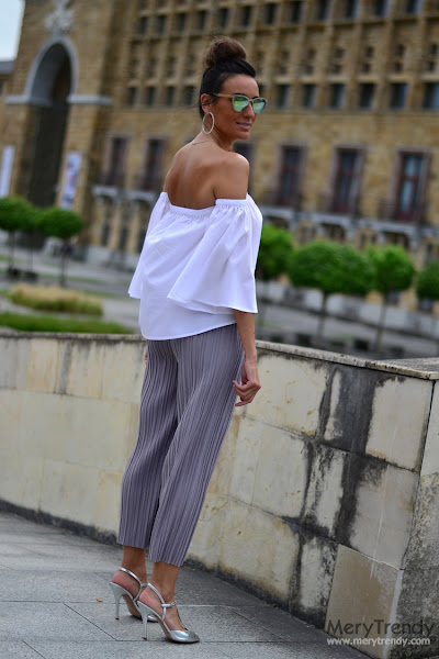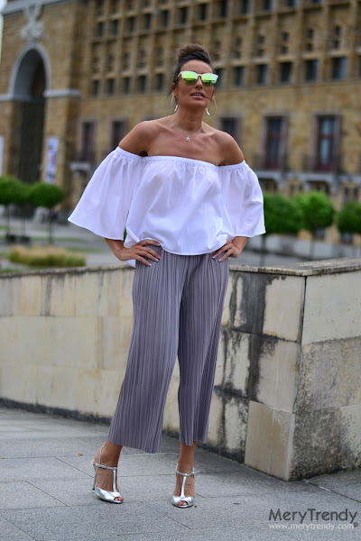 Pantalón plisado: Romwe (NEW). Blusa escote bañera: Romwe (NEW).