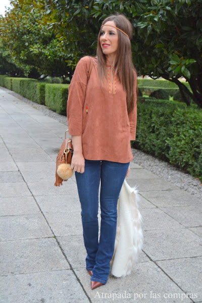 Hoy os enseño un look con una chaqueta de antelina que compré a principio del invierno. En mis redes sociales os la enseñé pero aunque le estoy dando mucho uso por aquí todavía no había salido. Cuando la compré dudé bastante con el color, pero acerté quedándomela en camel. Hoy os la muestro en un estilismo muy setentero con pantalones acampanados y una blusa que ya os enseñé hace tiempo aquí la cu ...
