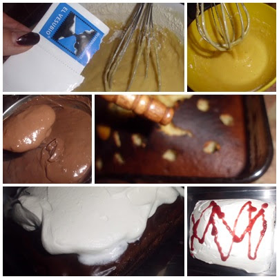 Para el 22º Desafío en la Cocina, las Bosses nos han propuesto hacer un Poke Cake, esto es algo muy fácil de hacer fuera del Desafío, ya que está hecho en un rato: Se nececita un sobre de preparado para bizcocho, un sobre de puding o de alguna crema ya preparada y un bote de nata ya montada. Nosotras lo hemos hecho todo. El detalle de este pastel es que, cuando está todavía tibio, con el mango de una cuchara de madera se le hacen unos agujeros y sobre ellos se le echa una crema, una gelatina o algo para rellenarlos. Se pone encima una capa de nata o merengue y algo crujiente encima de todo, ya sean galletas medio molidas o simplemente almendras picadas.