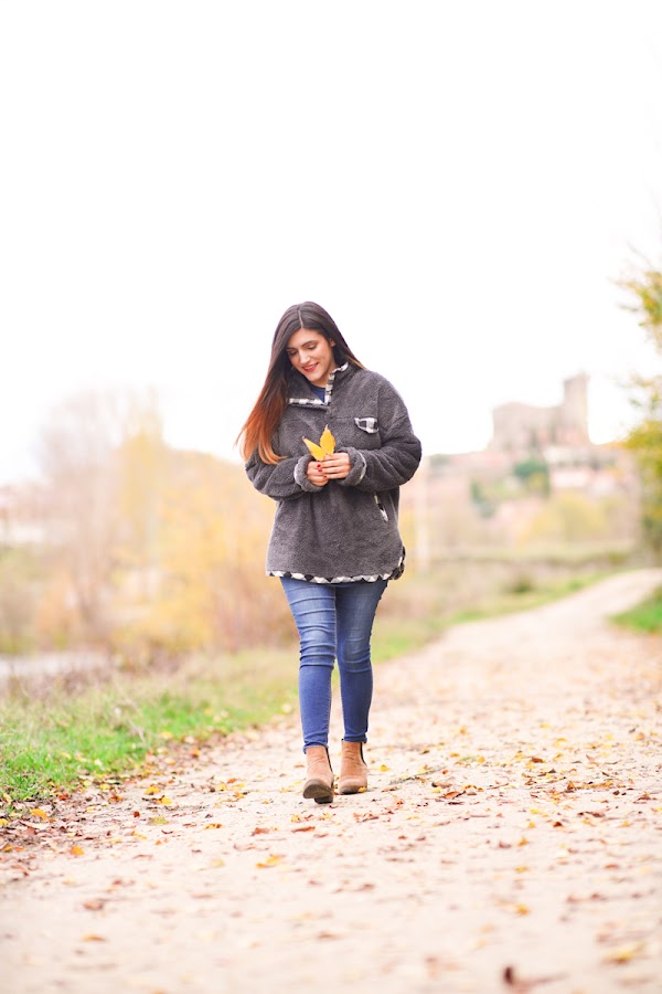 El día de las fotos estuvimos dando un paseo junto al río que pasa por un pueblo de Salamanca. Habíamos quedado por la zona y llegamos un poco antes para pasar el rato juntos disfrutando de la naturaleza y los últimos trazos del otoño. Fue un momento verdaderamente agradable. Después de una semana de estrés y no parar me vino genial poder respirar aire fresco y escuchar el sonido del agua sin pensar en nada más.