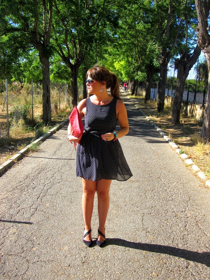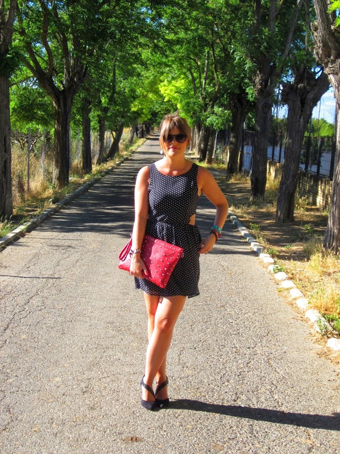 Hoy os traigo un look de lunares, un estampado que me encanta y que puede dar mucho juego a la hora de combinar. Este vestido lo compré el verano pasado y me encantó el toque que le dan las dos aberturas laterales, aún no estoy morena pero con la piel bronceada luce aún mejor.