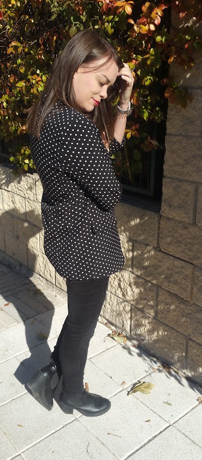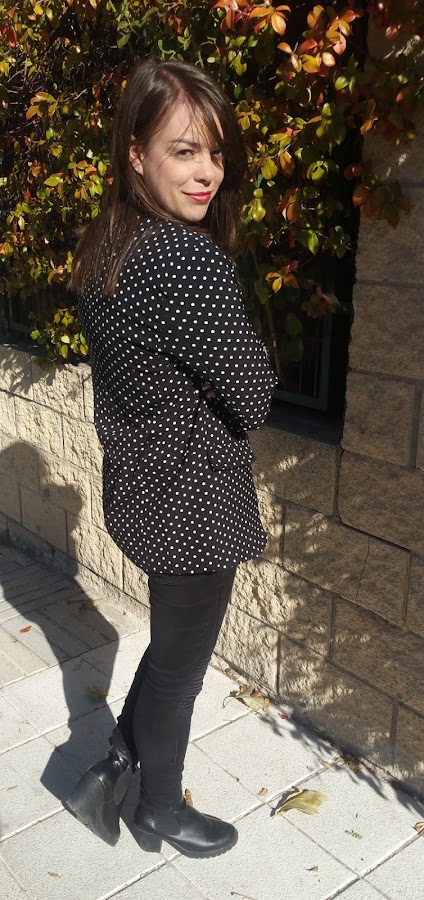 El precio de esta polka dots blazer (americana con lunares) es de 26,32 y la verdad es que me encanta, la tela es finita, de manga 3/4, larguita, con muy buenos acabados y perfecta para todas las épocas del año, ahora, con abrigo encima y en otras épocas sola, a mi me parece una maravilla y acerté de lleno con la talla, me queda como hecha para mi, tal cual todo donde debe ir, los hombros en su sitios, no tira, no me queda holgada, ya os digo, parece que está hecha a medida.
