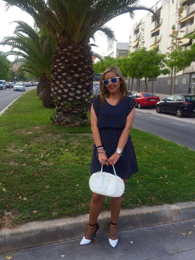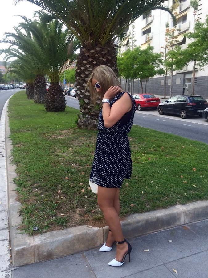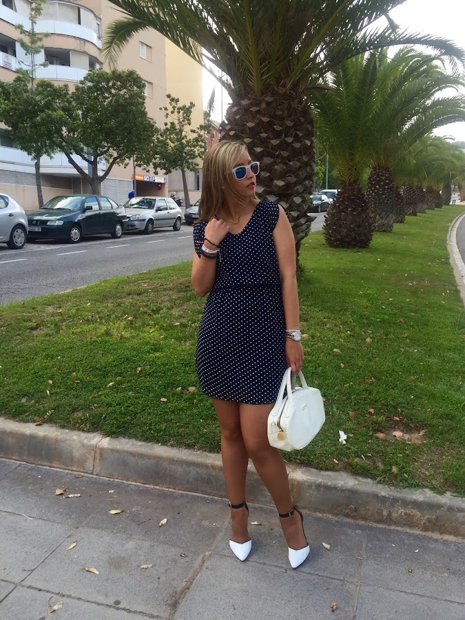 Good night babies! Last post of the week and I want to enjoy of the weekend after a week with a lot of work. I really love the outfit that I show you today. I wore a polka dots dress in white and blue with stilettos in the same colours and my white bag of Tous. I love this kind of dresses because you can wear it to go working or to go out with friends. I think that they are basic in our closet.