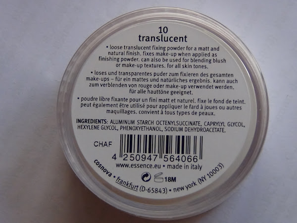 Así que como yo soy loca y obsesiva también quería probarlo y me compré este polvo traslúcido de Essence para ello haha.