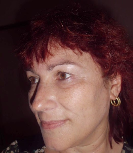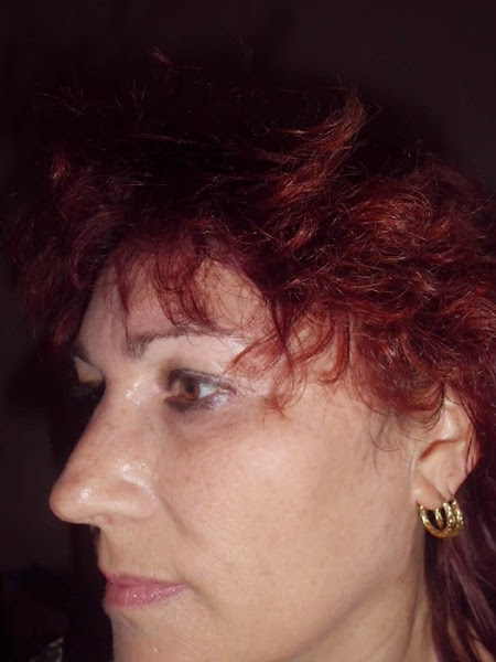 En la foto de la izquierda llevo mi aceite, mi crema y mi maquillaje; este no deja brillos, pero fíjate como se nota cuando he aplicado los polvos compactos, en la otra foto. La piel se ve lisa, mate y el tono... Me gustan mucho estos polvos compactos.