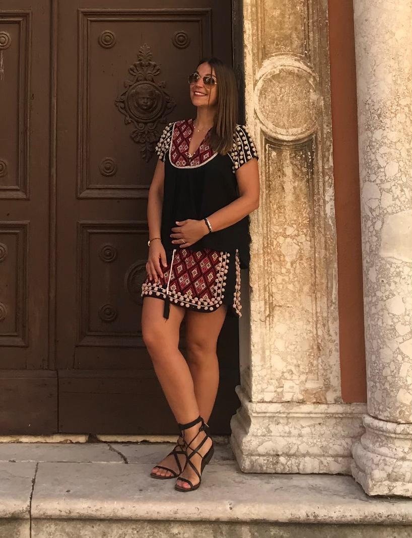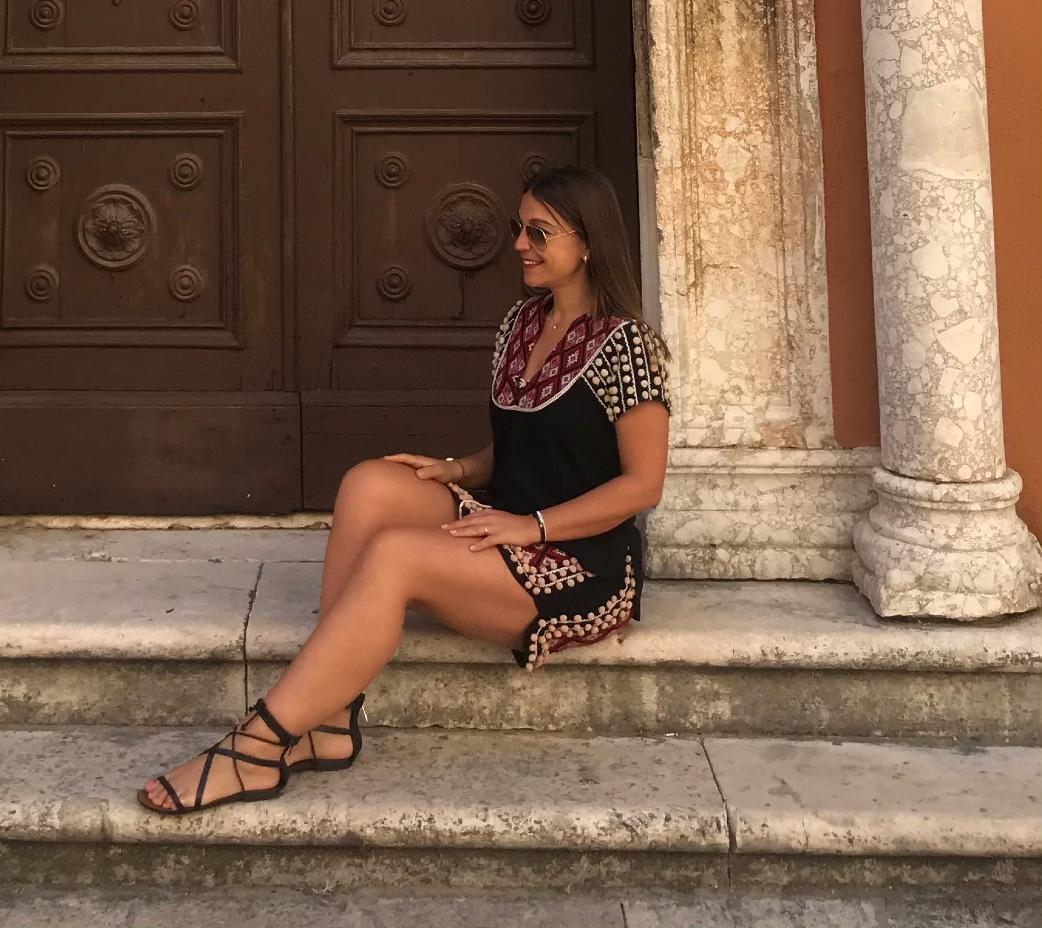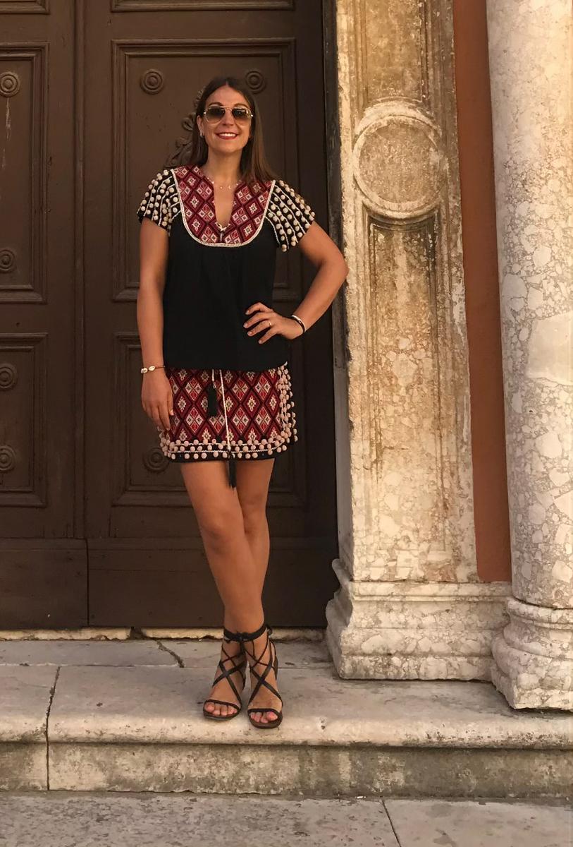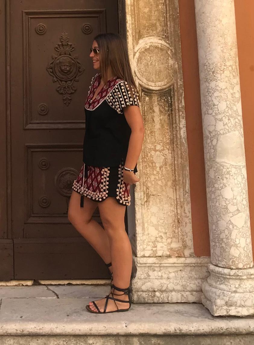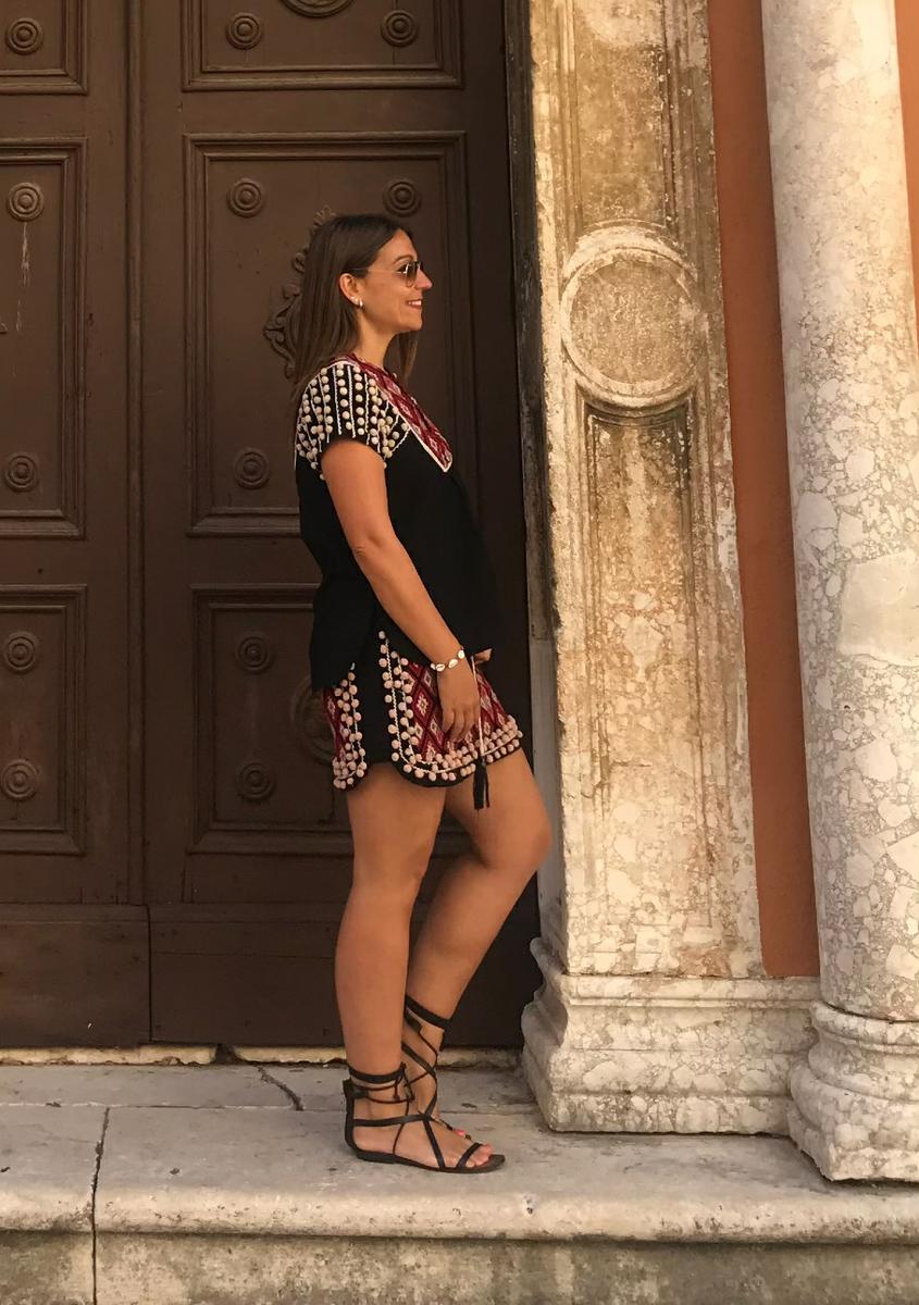 El conjunto compuesto por falda y blusa, que también queda genial cada prenda por separado, combinado con sandalia gladiadora.