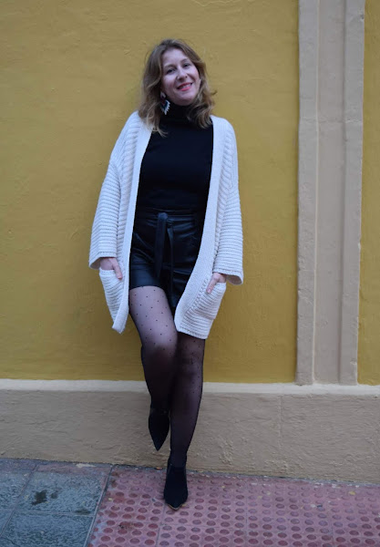 En esta ocasión lo he combinado con un total black, formado por short y jersey de cuello vuelto negro.