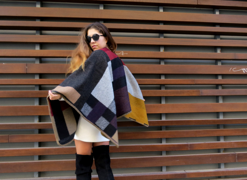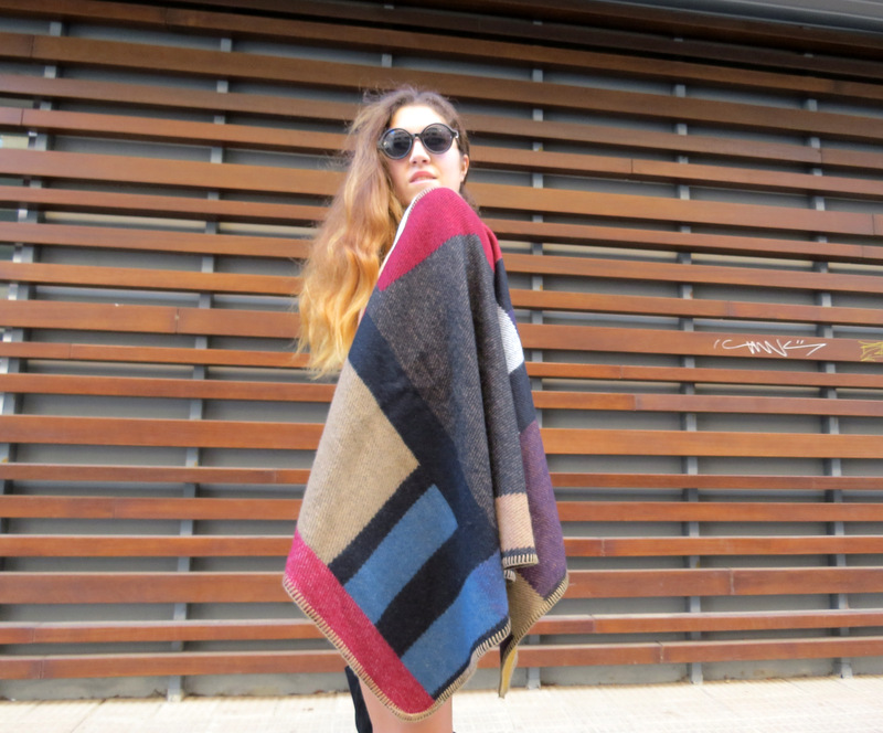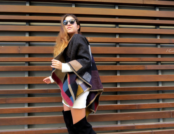 os cuento mi look de hoy con una de las prendas estrellas del otoño pasado, fue tendencia total y que no falta en el armarios de todo el mundo, el poncho con cuadros de colores, el original es de la firma Burberry por el módico precio de 1.400$ y éste que yo llevo de MULAYA que lo compre en su día por unos 23€, no está mal la diferencia eh?.