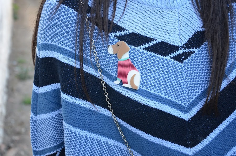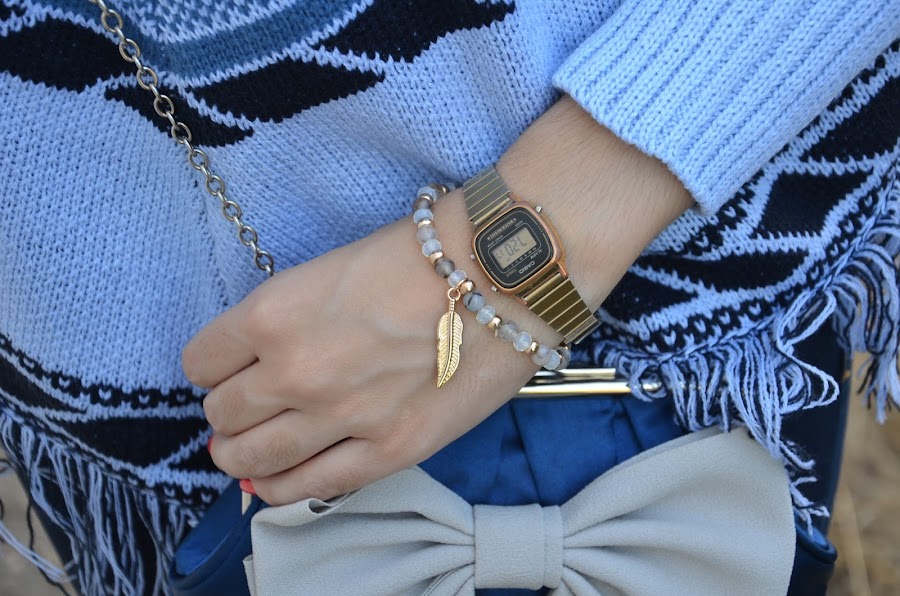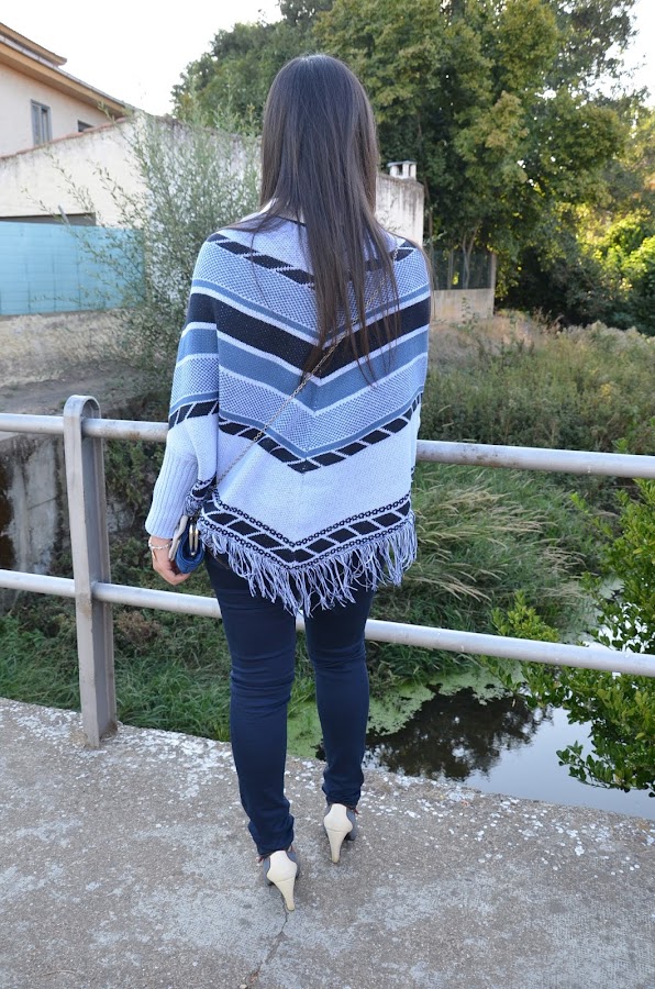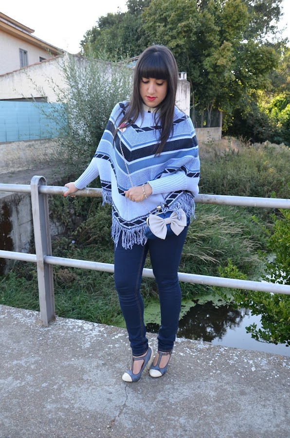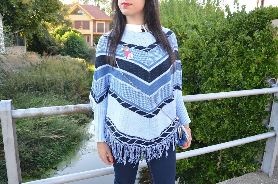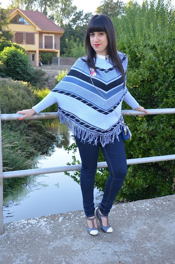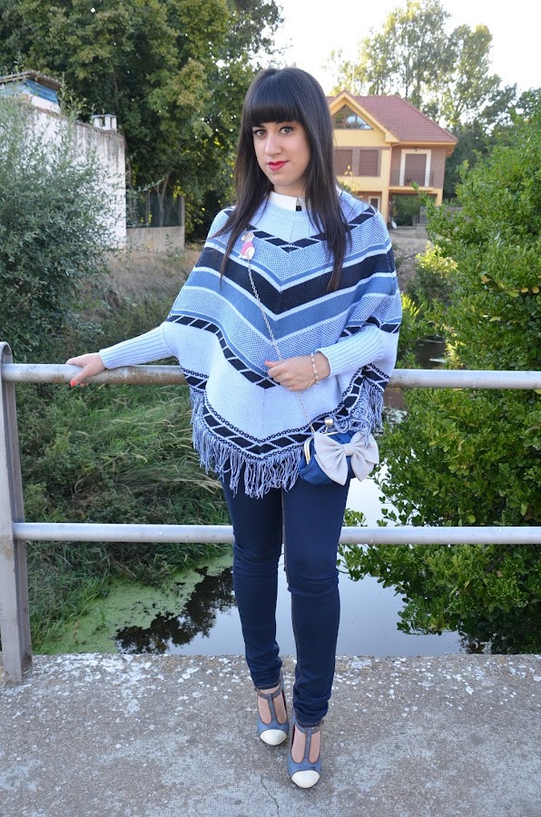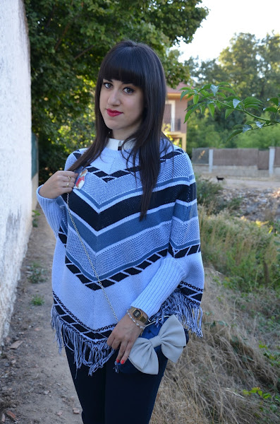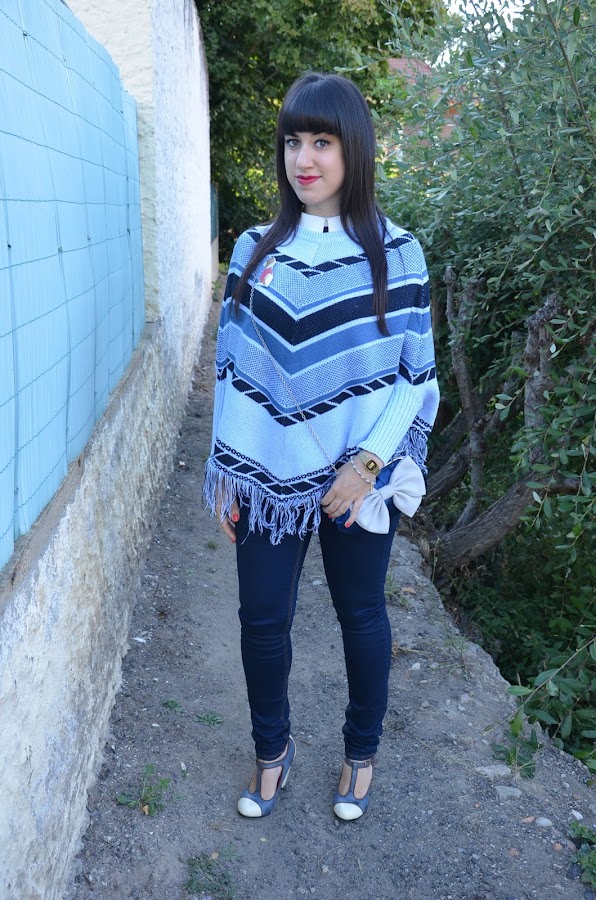 En el look de hoy quería enseñaros 3 piezas: el poncho, el broche y la pulsera.