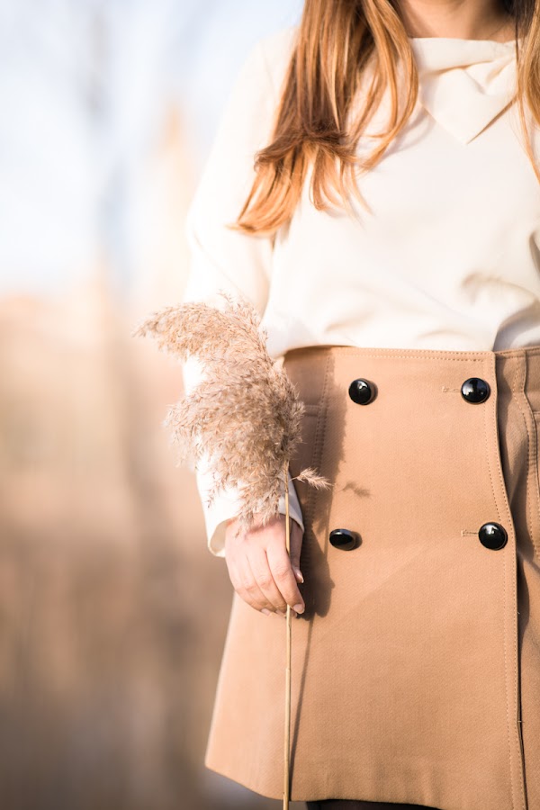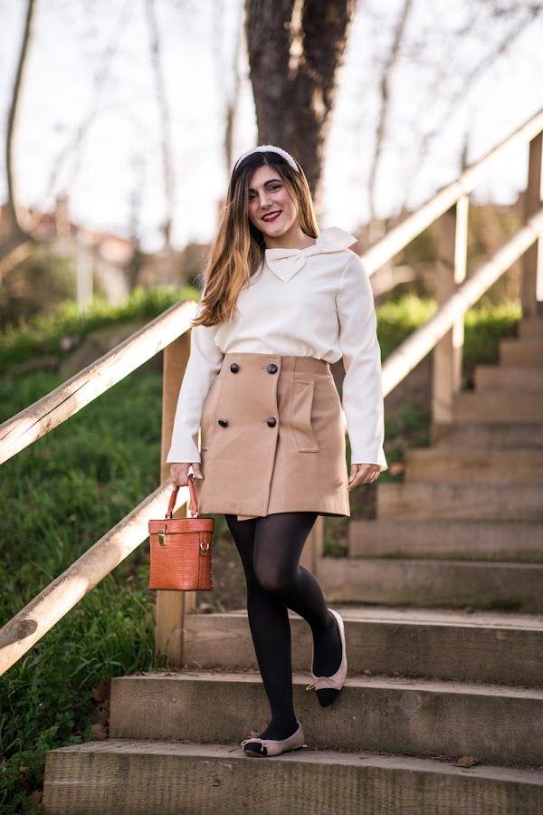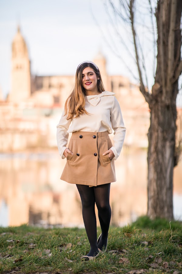 Me recordó a los vestidos del Hollywood clásico (salvando las distancias, obviamente), esos que llevaban un maxilazo en el hombro. En principió pensé en estrenarla en Nochevieja, pero di con un vestido que me apetecía llevar más. En parte me alegro, porque ahora puedo enseñaros este precioso outfit con blusa con lazada y falda con doble botonadura. Espero que os guste y que os resulte útil de cara a crear vuestros propios conjuntos.