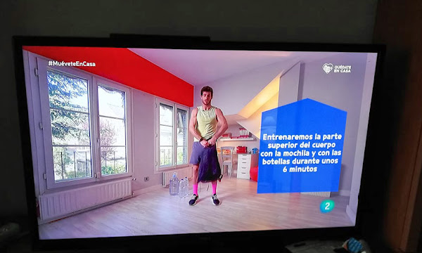 La televisión se ha sumado a Ponernos en Forma, y el día comienza con el programa de TVE2 de #Mueveteencasa, dirigido por Cesc, preparador físico, que cada día, en 30 minutos, nos prepara diferentes ejericicios para practicas en distintas intensidades y utilizando objetos cotidianos que todos tenemos en casa, como sillas, mesas o botellas.