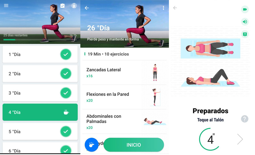 Esta app, te ejercita cada tres días, y el cuarto día descansas. Los ejercicios, aunque son similares, son diferentes cada día.
