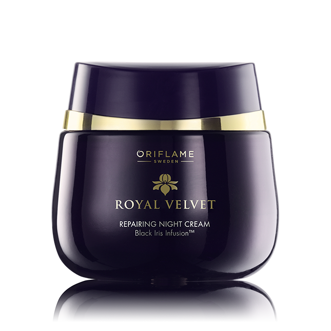 Crema de noche Reparadora Royal Velvet Oriflame. Para pieles a partir de 40 años. Restaura la juventud de tu rostro gracias a la Infusión de Iris Negro, que aumenta la firmeza de tu piel mientras duermes.Reduce las arrugas y la fatiga de tu piel, mejorando su elasticidad.