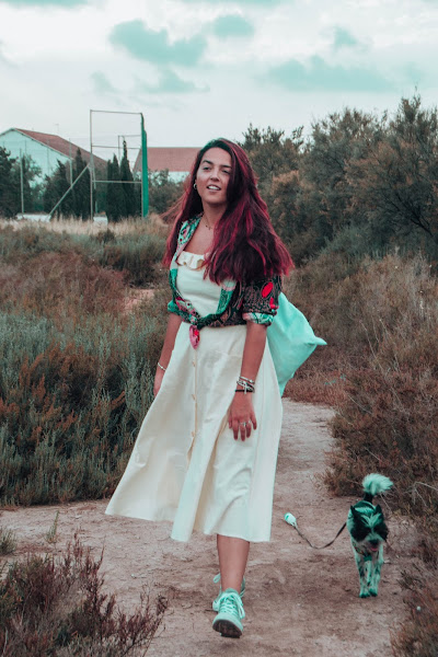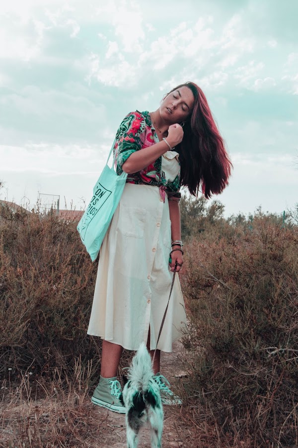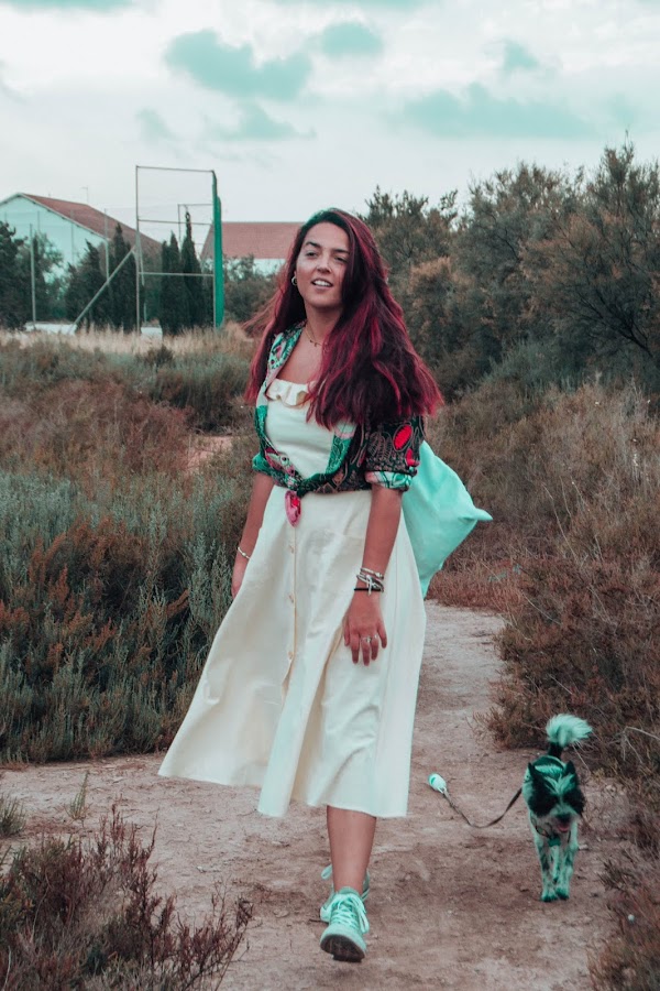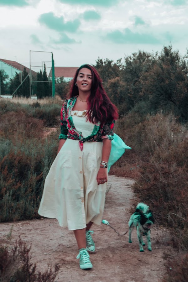 Todos salimos ganando: yo le saco partido a este maravilloso vestido acampanado de DropShip Clothes; Pipo corre cual caballo a sus anchas; y mi hermano... mi hermano, la verdad que no sale ganando en nada. Sólo le queda respirar y aguantarnos.