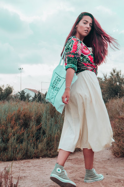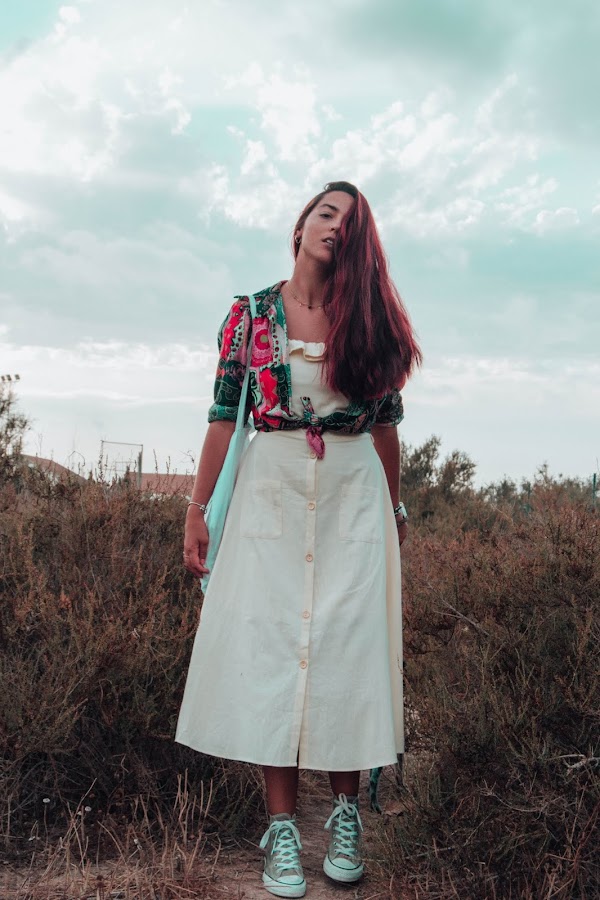 El vestido por si sólo me sabía a poco, notaba un look apagado que nada tenía que ver conmigo. Culpa de mi complejo "póntelo todo encima hasta que no quepa nada más" tal vez. Aquí entró en juego esta maravillosa camisa que fiché en uno de los mercadillos de Camden. La mayoría la odian, eso hace que yo la quiera aún más.