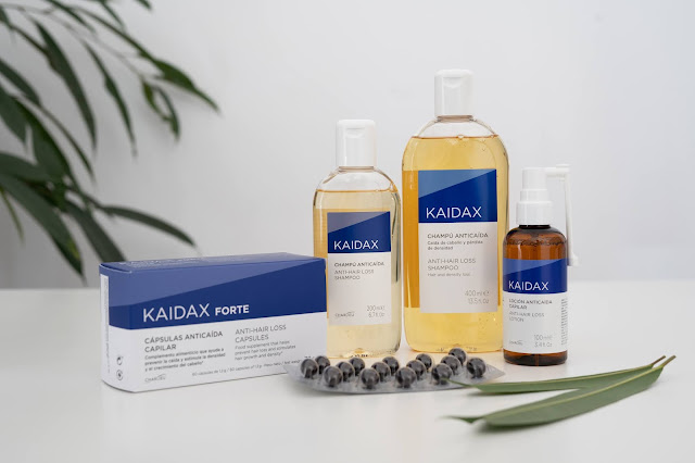 La línea KAIDAX, desarrollada por un grupo de dermatólogos expertos, está indicada como tratamiento de la alopecia o para aumentar la densidad de los cabellos débiles. La línea está compuesta por el champú anticaida (en dos formatos), la loción anticaída y un complemento nutricional en formato cápsulas para prevenir y estimular la caída del cabello. Como activos elegidos para tratar la caída del cabello Kaidax ha elegido la semilla de calabaza y sabal serrualta destinados a inhibir la enzima 5-a-reductasa y a combatir el exceso de secreción sebácea. La cistina y taurina estimulan la síntesis de queratina. La fórmula se complementa con los ácidos esenciales Omega-3 , L-Cistina, Zinc y Vitaminas.
