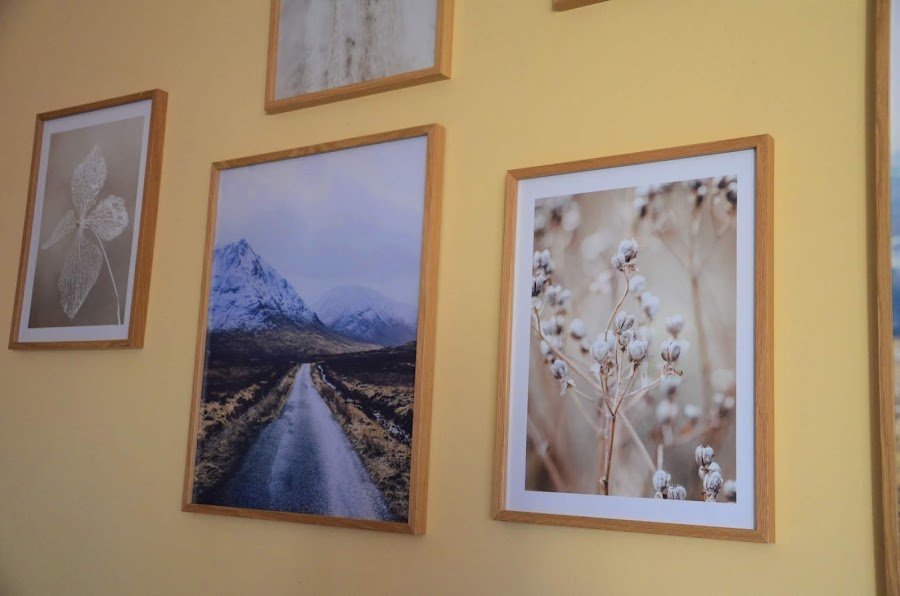 En esta ocasión me decanté por los marcos en madera de roble y pósters inspirados en la naturaleza y en imágenes que me transmiten serenidad. Es muy difícil elegir tanto tamaños como diseños, tienen tanta variedad y son todos ellos tan originales y bonitos que los quería todos, sin embargo la otra vez ya deje echado el ojo a varios de ellos, especialmente al de la vaca escocesa, y esa fue mi elección principal para después crear el mural en sintonía.