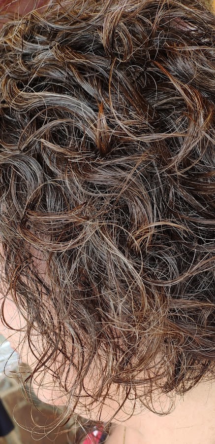 Este último año mi pelo necesita de cuidado extra porque me hice la permanente y porque desde "esta agresión", ya seco, los rizos no se mantienen definidos sin ayuda, sin espuma o algo, y en mis patillas hay un encrespamiento especialmente antiestético debido a las gafas.