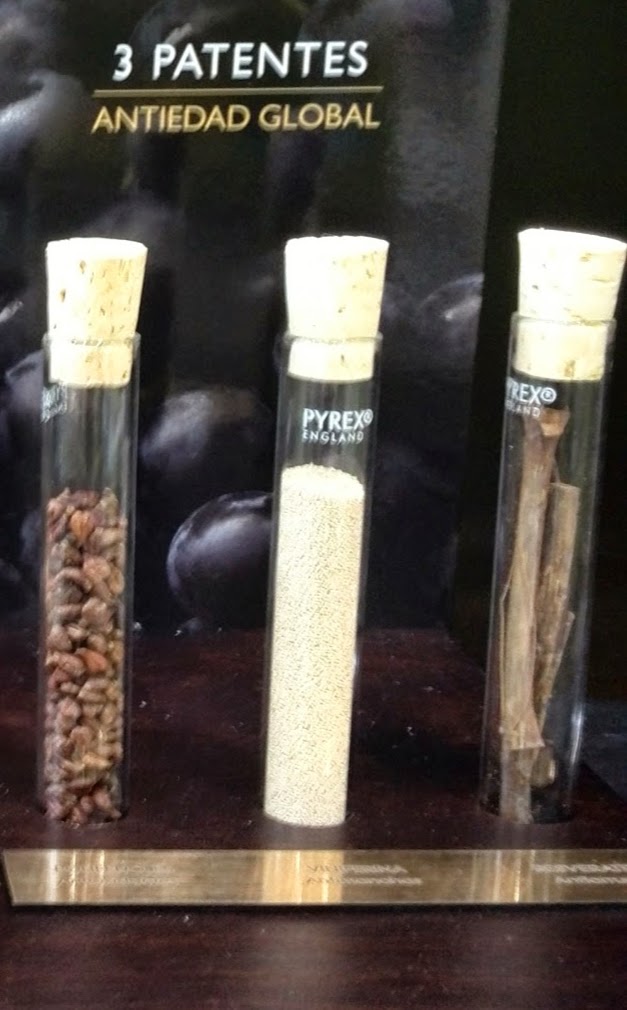 Resveratrol : de sarmientos de vid es una revolución antiedad que intensifica naturalmente la firmeza y la juventud de la piel. En resumen os puedo decir que este maravilloso Elixir gracias a sus tres patentes y su combinación de los mejores aceites vegetales antiedad, de nuez de sándalo, de jojoba, biológico de higo chumbo, de cilantro y de pepitas de uva, octenemos una piel mas lisa , con un tono más uniforme, mas luminosa y mas joven.