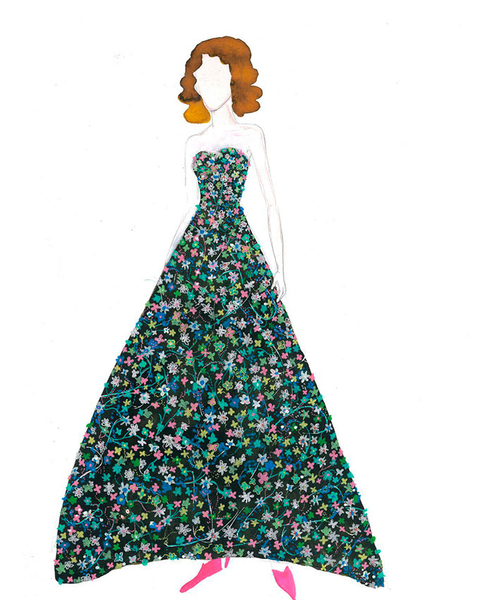 Sandra Escacena nominada al Premio Goya como mejor actriz revelación por la película Verónica lució un vestido de DOLORES PROMESAS RED CARPET diseñado en exclusiva para ella por Alicia Hernández directora creativa de la firma española. Un vestido de corte romántico con escote corazón, cuerpo ajustado y falda asimétrica y con volumen, confeccionado en tul bordado con flores multicolor superpuestas.