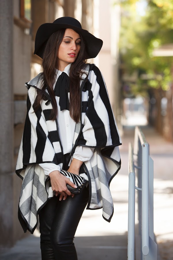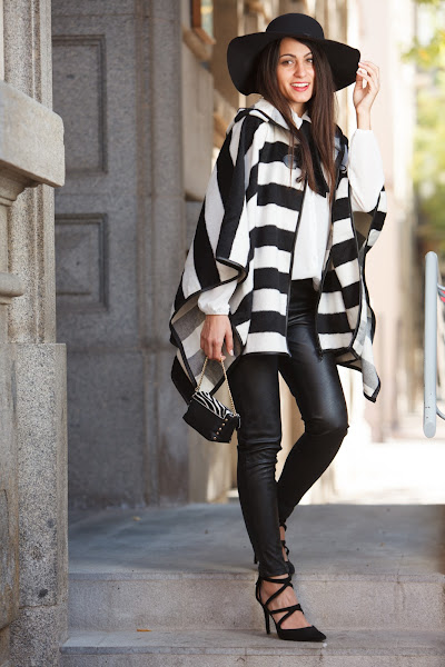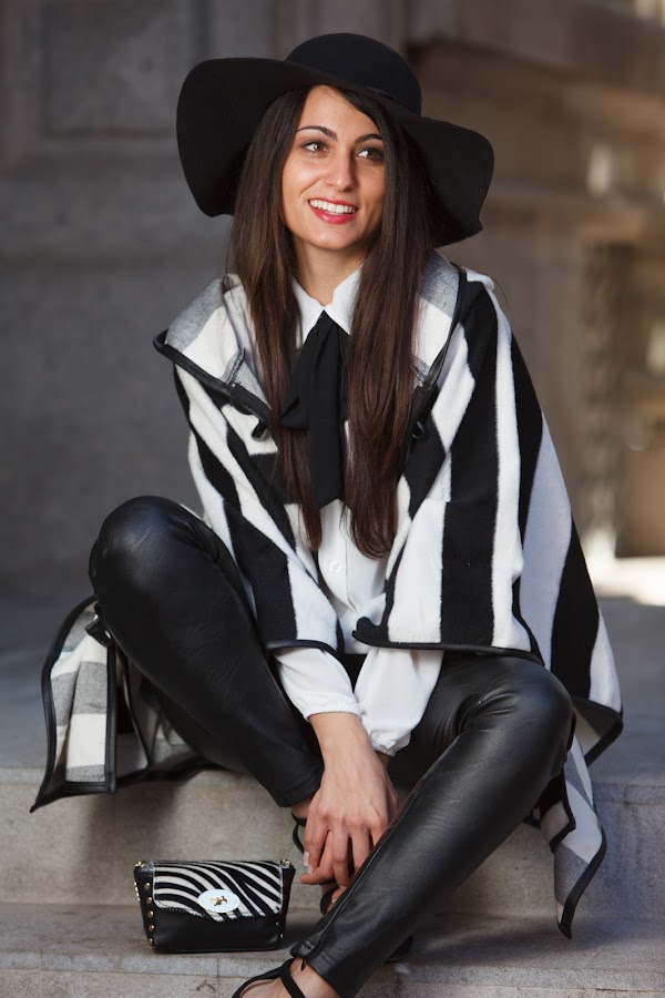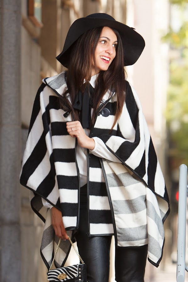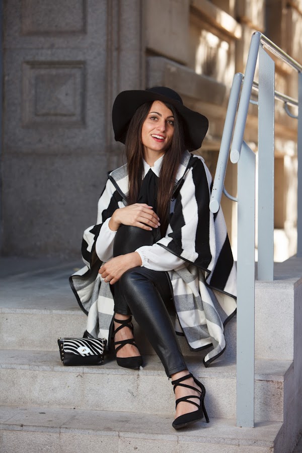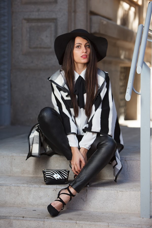 Para empezar la semana os dejo con un look muy divertido con el clásico BLANCO & NEGRO. Un total look de PREMIUM BOUTIQUE (C/Sant Blai,10) una tienda de Tortosa que ha abierto hace muy poco y tiene piezas realmente ideales y especiales. Del look de hoy me gusta todo pero, en especial,el poncho de rayas con tela polar y el mini bolso de piel con estampado de zebra...