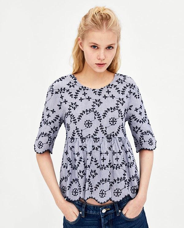 5. Blusa con bordado en contrate: Zara