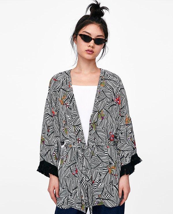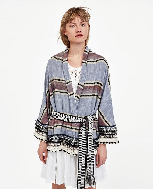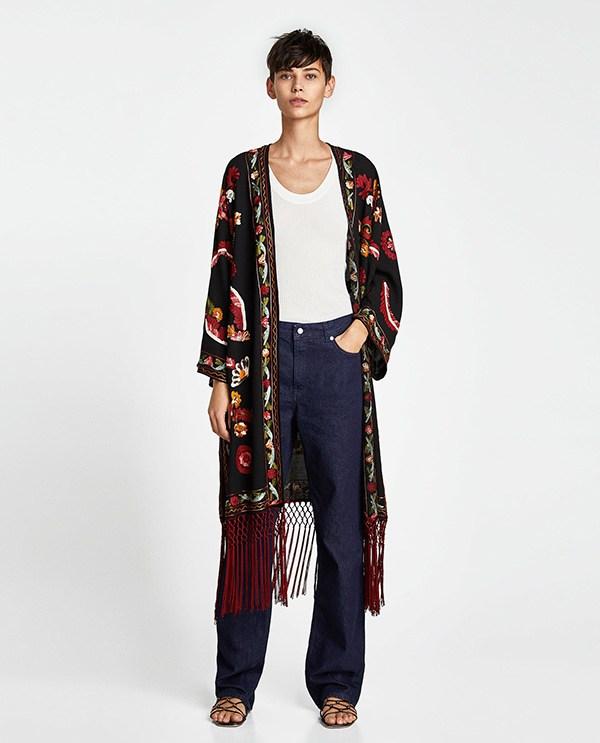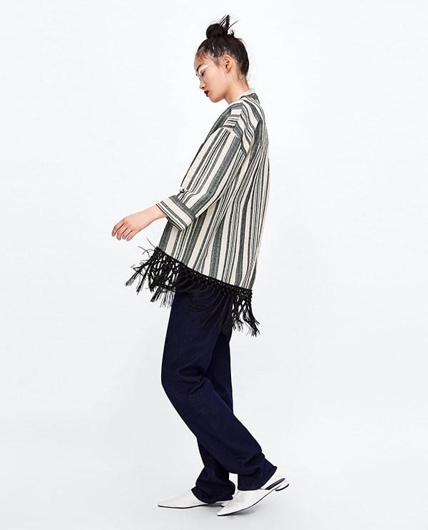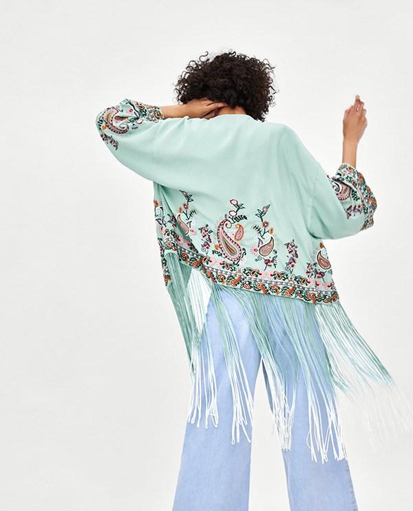 El kimono ademas de versátil tiene muchas formas y los podemos encontrar de todo tipo, largos, bordados estampados, con telas sedosas o con telas un poco mas rusticas, cambiando absolutamente el aspecto y finalidad de esta prenda! La verdad es que me gustan mucho los que tiene flecos y que se mezclan un poco con la idea de mantón de manila, perfecto para las ocasiones especiales y que darán a nuestro look un aspecto elegante y refinado. Y es que muchas veces la tarea de encontrar algo para cuando vamos de boda y refresca es muy difícil y gracias a dios ya dejamos atrás los echarpes y boleros que son una autentica aberración! El kimono sera nuestro mejor aliado y la mezcla de estampados nos dará un toque de los mas original.