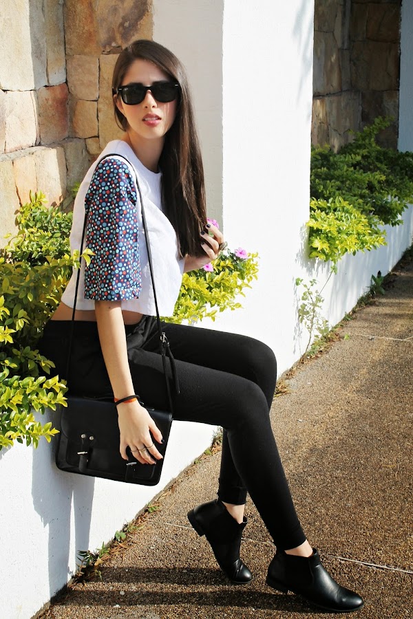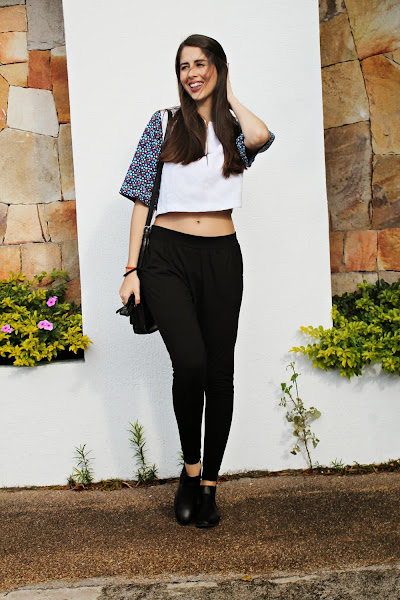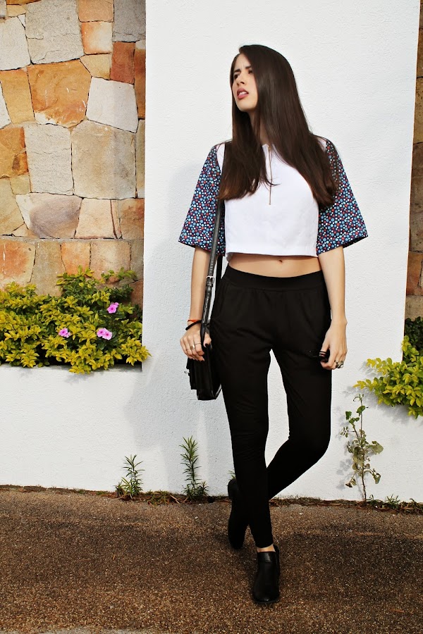 Este look es muy cómodo y básico, es lo que normalmente suelo usar en mi día a día, prendas cómodas, holgadas y fáciles de usar. Yo odio de verdad estar apretada para mi no hay nada más rico que dejar respirar la piel y prendas así son mis preferidas. El top blanco es un básico/notanbásico sorprende mucho con el detalle de colores en sus mangas y realmente ME ENCANTA, es de diseño nacional de la marca SUKSESS; el pantalón es mi "nipa" no me lo quito ni pa´dormir jajaja, su tela es muy suave y queda bien con TODO. Complemente con anillos dorados -que nunca me faltan realmente- unos lentes, un bolso estilo mensajero y unas botas y les tengo que dar el dato de las botas, las conseguí en la tienda TOTAL CALZADO POR TAN SOLO 1200BSF toda una ganga. Me encantan estas tiendas low cost en nuestro país, se pueden encontrar tesoros si se busca muy bien.