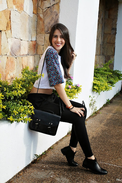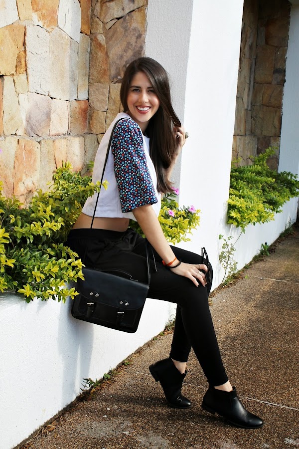 Crop top : Suksess / Pantalón: Glamtrendy / Bolso: Balu Accesorios / Lentes: Art trendy / Botas: Total calzado / Anillos: H&M