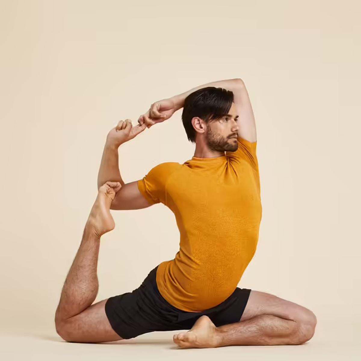 Lo creas o no, el yoga masculino está en aumento a medida que más hombres descubren los increíbles beneficios del yoga para el cuerpo. De hecho, el yoga solía ser una actividad predominantemente masculina de la casta sacerdotal Brahmán en la India, y esta práctica se transmitía de hombres a niños.En ese entonces, los hombres a menudo usaban vestidos sagrados tradicionales (llamados dhoti) y el pecho desnudo. Pero, ¿qué deberían utilizar los hombres para hacer yoga en la actualidad? Sin camisa con algunos pantalones de chándal puede funcionar muy bien para una práctica en el hogar, pero necesitas el equipo adecuado para las clases en un estudio de yoga.